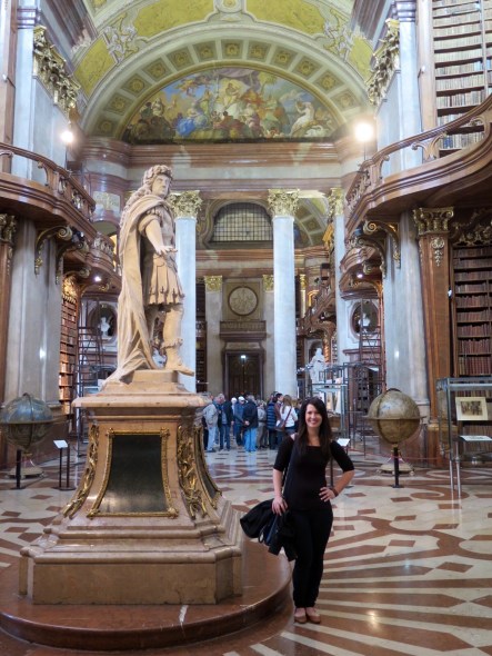 After taking the train from Prague to Vienna we met up with one of our good friends Robert who showed us an excellent time during our three days in Vienna. We again walked all over the city and Robert even took us for a drive through the countryside, out to Melk Abbey. The library at the Abbey was stunning, however there again were restrictions on pictures in the beautiful room. The first picture is of the Vienna Opera House, while the second, third and fourth images are from Schonbrunn Palace. The palace and gardens were amazing despite the pouring rain and bitter cold. If the weather had been better we would have loved to tour the grounds more and probably could have easily spent all day. The summer palace was definitely my favorite, behind the Austrian National Library of course, which can be seen in fifth image. Lastly, the coffee houses in Vienna are just as delicious as advertised, and the cross walking signs are adorable, with two people holding hands as a heart is between them.