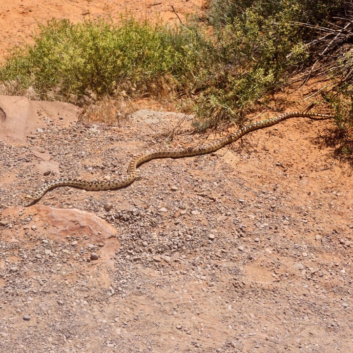 • It was a gopher snake! The Park Ranger we showed this picture too was really excited and telling us all about them. I wish I would have known at the time it was non venomous. My geeky science side would have been nerding out!