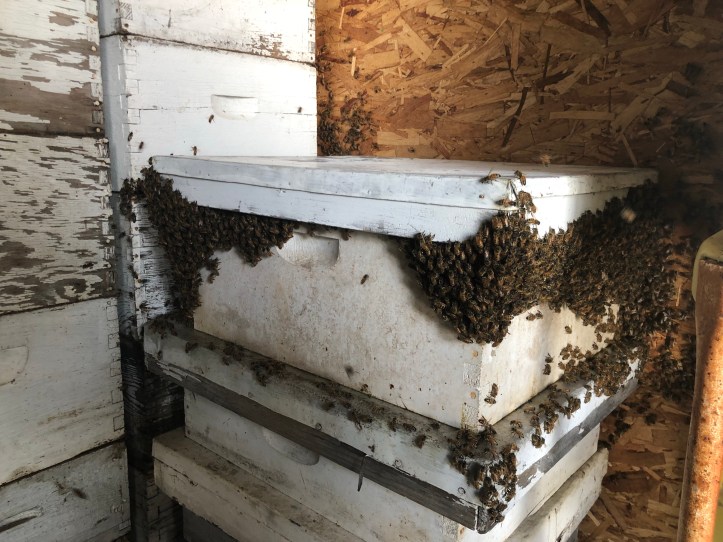 Earlier this summer my Great Uncle reached out with a honeybee problem. He had a swarm move into his storage shed that contains a bunch of old empty supers, and wanted to see if we could get them organized into one hive. Not quite knowing what to expect, we found bees covering almost every available space in the shed. Tearing out many, many supers we were able to find where the bees were concentrated and moved them (and hopefully the queen) into one hive. We checked back on this hive a few weeks later and found them fully moved in, but out of space for new honey. We happily added a new super as well as added additional supers to my Uncle’s other hives.