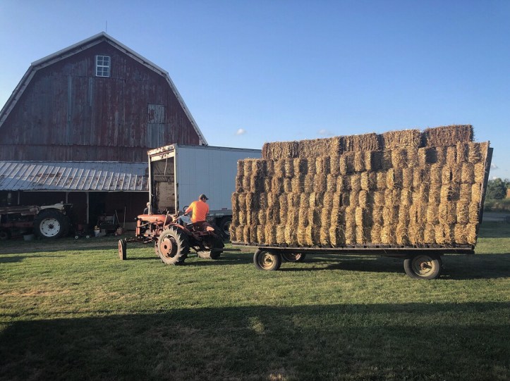 This summer has flown by as we find August drawing to a close. As it has been several months since my last honeybee update, I thought I’d share some of our recent photos. Luke and I have been helping my parents bale straw this year so we’ve spent a lot of time home, with plenty of opportunity to check on our bees. Unfortunately all 11,000ish bales of straw we’d accrued were lost in my parent’s devastating barn fire. I decided to add some of the photos from baling straw this season partly due to our old barn being in them and partly because of the swing of emotions that have occurred since the photos were taken.