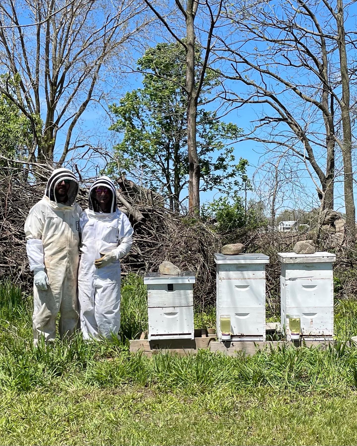 While I haven’t posted as many beekeeping updates over the past year, we are still very active keeping our hives healthy and happy. We currently have ten hives that are spread throughout our farm. We lost four hives over the winter and bought hives to replace them that were suppose to arrive two days before my due date. Thankfully Quinn was kind enough to wait to arrive till after we got the hives established. I was out there helping Luke at 39 weeks pregnant. Here’s to a good, healthy summer for our busy bees!