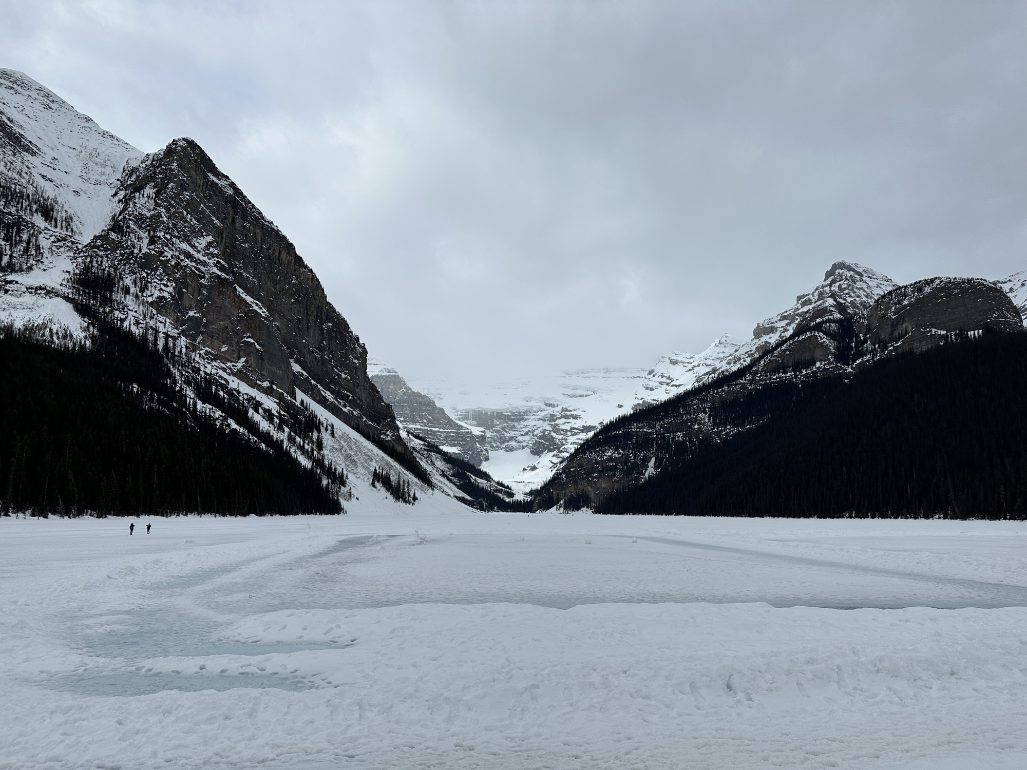 Since first planning this trip back in the summer of Covid, I had wanted to stay in the Fairmont Chateau Lake Louise. Samuel and I ended up splurging and we both used points to stay at the famous hotel. The views from the Fairmont were truly stunning, with our rooms overlooking Lake Louise. While we were visiting during the shoulder season, we were able to book our rooms at a reduced rate and were upgraded for free to the lake view rooms. The lake was still ice covered, though they had shut down the ice rink for the season. We, along with many of the other guests ventured out onto the ice despite signs posting warnings. We were fine, until we felt our heels sinking into the ice and snow, so we soon turned around and ventured back. The hotel itself is elegant, though it did feel a little used and dated. That said, we had one of the most amazing breakfasts ever overlooking the lake the next morning.