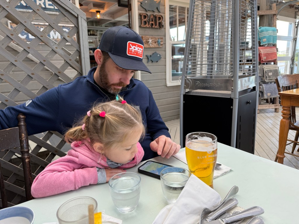 Arriving in Alma, we had the coziest little AirBNB. There was a really friendly horse next door and it was within walking distance to everything in town. After settling in, we walked to The Holy Whale Brewery, where Luke had the best Skittle Sour Ale. Before having kids, breweries were one of Luke and I favorite places to explore when on vacation. I can’t remember the last time that we went somewhere with the kids and just relaxed while enjoying a beer. Utilizing our hidden weapon of sticker books, we had a really nice time with the kids while enjoying a drink before we headed to dinner at the Muddy Rudder. The bartender at the Holy Whale has an encyclopedic memory of Star Wars. Seriously, he knew the names of all of the random characters in Quinn’s sticker book, even Jabba the Hutt’s henchmen.