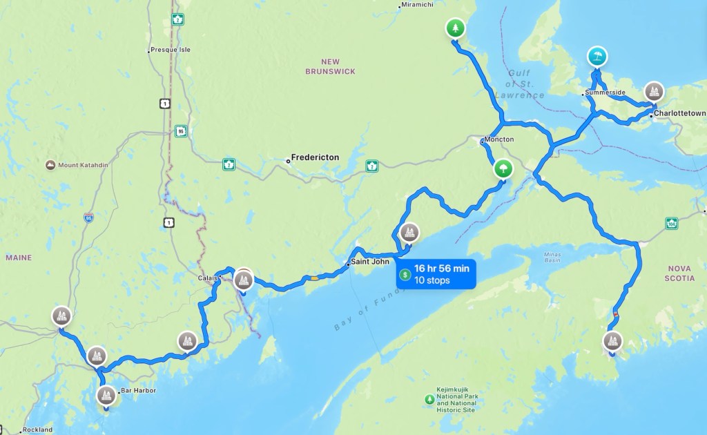 The most challenging aspect of planning was deciding where to fly in and out of. Nothing quite fit, until I had my next lightbulb moment. When staring at the map I became curious at the distance from Saint John, NB to Bangor, Maine. With the drive being under three hours we had a new endpoint. Plus we could reshape the back end of the trip to add a day at Acadia National Park. This stunning park has been on our bucket list for years.