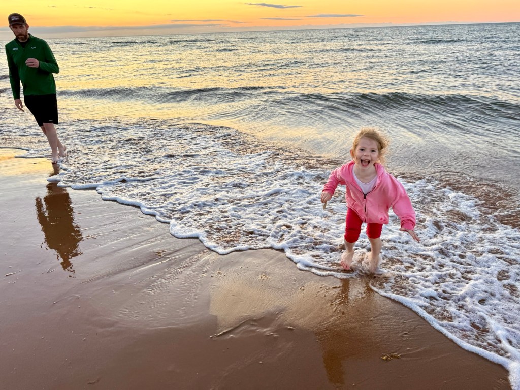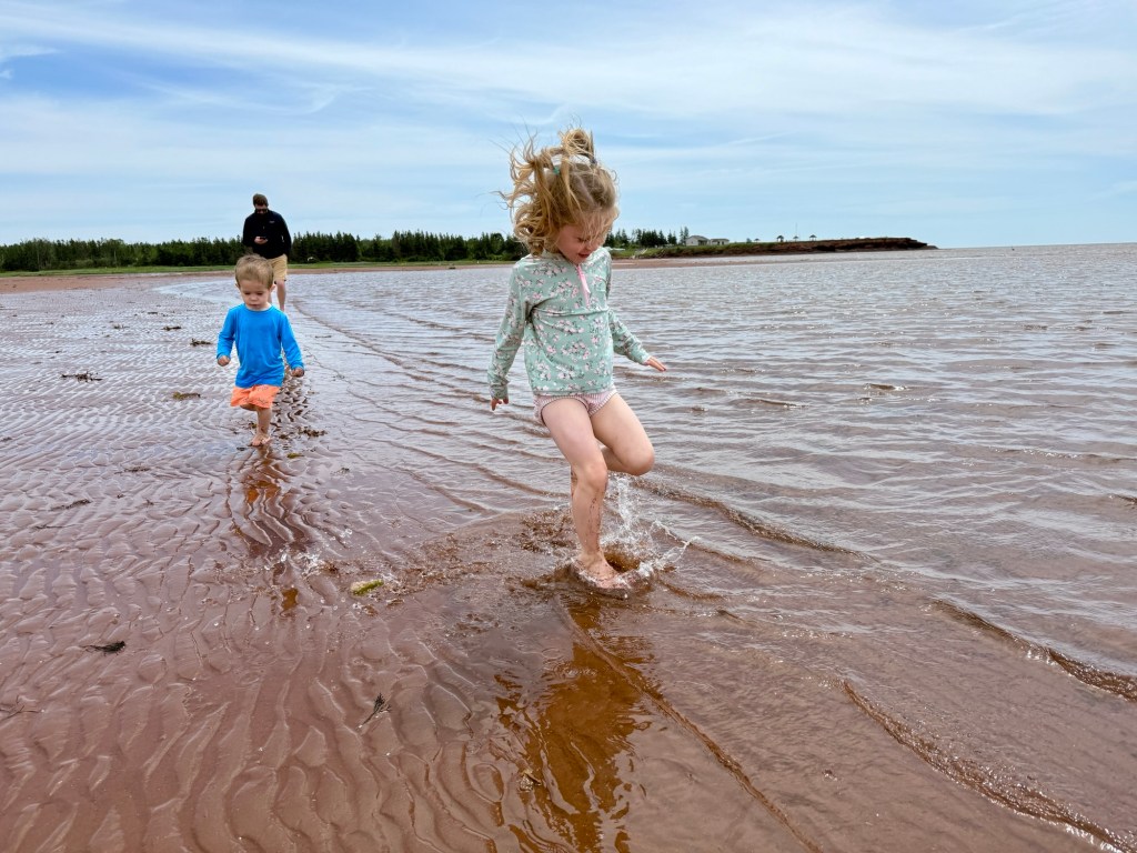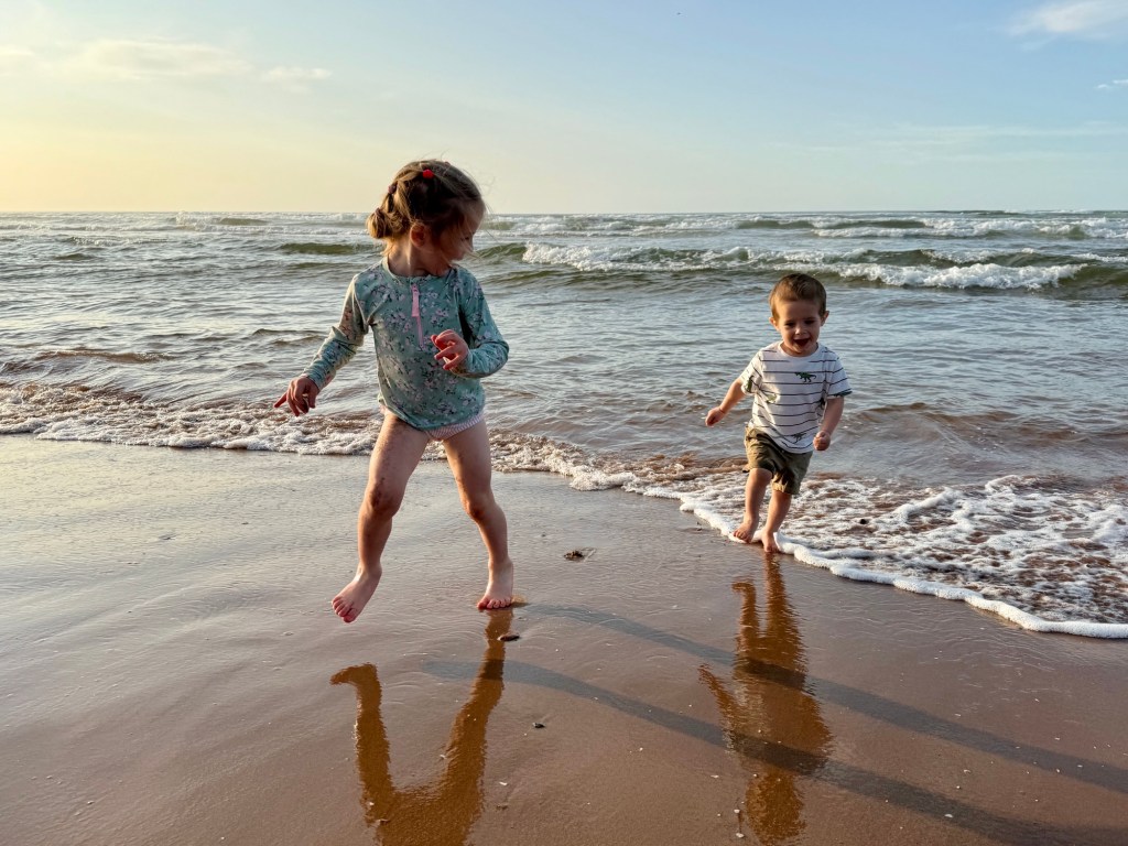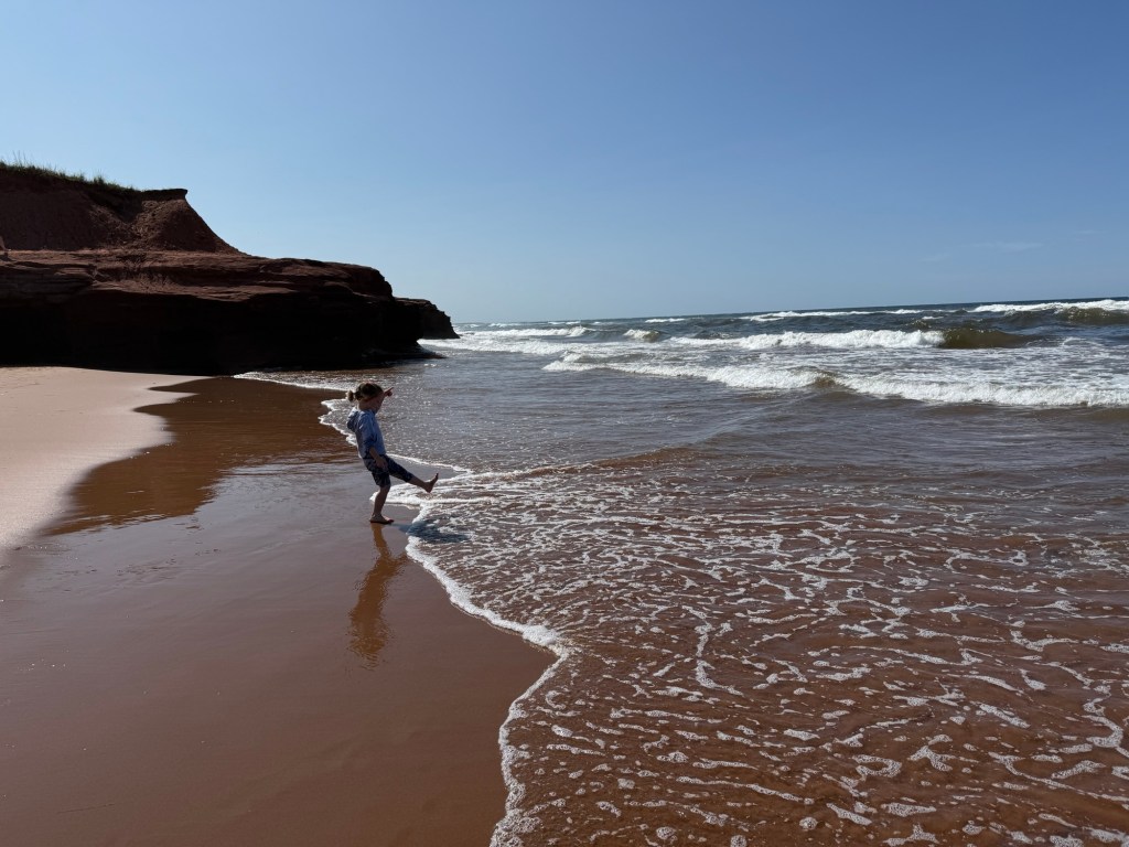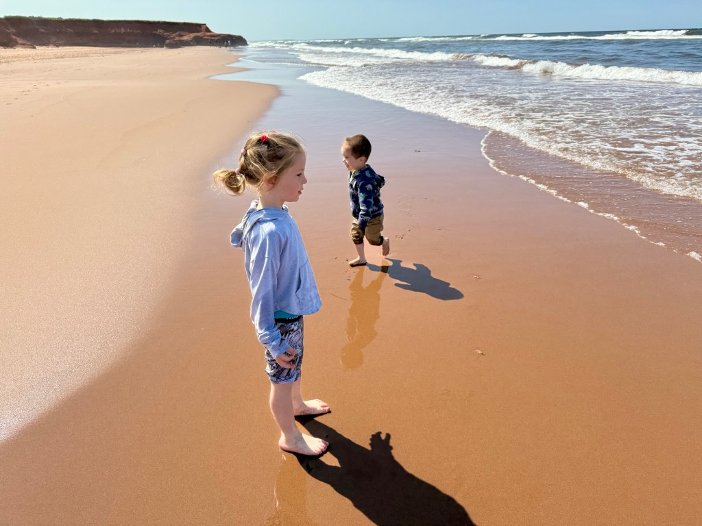 We were so relieved to finally be at our cute little home for the night. We ventured out just before sunset to get ice cream from Harry’s Dairy Den on Tracadie Bay. Afterward we walked along the water until we got to Prince Edward Island National Park and eventually the ocean. The kids had so much fun chasing the waves despite not being in swimsuits. With the sun setting we hurried to our cute AirBNB to finally get some rest after our grueling back to back travel days.