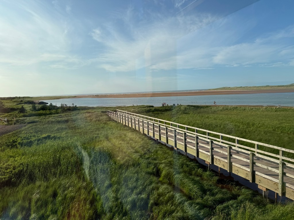 It was just over a three hour drive to our amazing AirBNB in York, Prince Edward Island. The drive took us through part of New Brunswick before we crossed the eight mile Confederation Bridge to Prince Edward Island. The AirBNB was an old farm house with a balcony overlooking the iconic red dirt potato farms and a second balcony overlooking Covehead Bay.