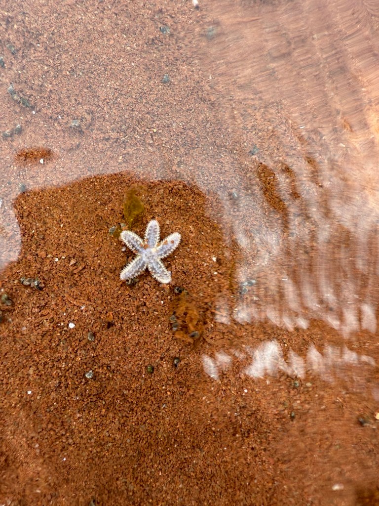 We had been blessed with beautiful weather with our one and a half days in Acadia National Park. As such it felt fitting that we woke up to heavy rain all day on our travel day. Before heading to Bangor, I had hoped to explore Tidal Falls Preserve to see if we could find any starfish. Thankfully we had a break in the weather when we got to the preserve so we got out of the car one last time. After 30 minutes of scrambling over rocks I’d almost given up seeing any starfish. A kind local man who was also out looking for starfish helped us spot a lavender one and two red ones. The tide was coming in when we were visiting which limited our exploring.