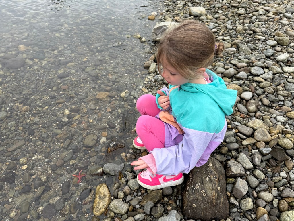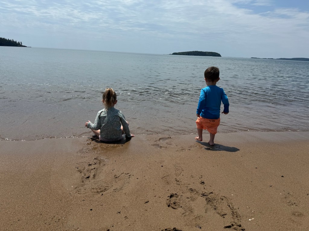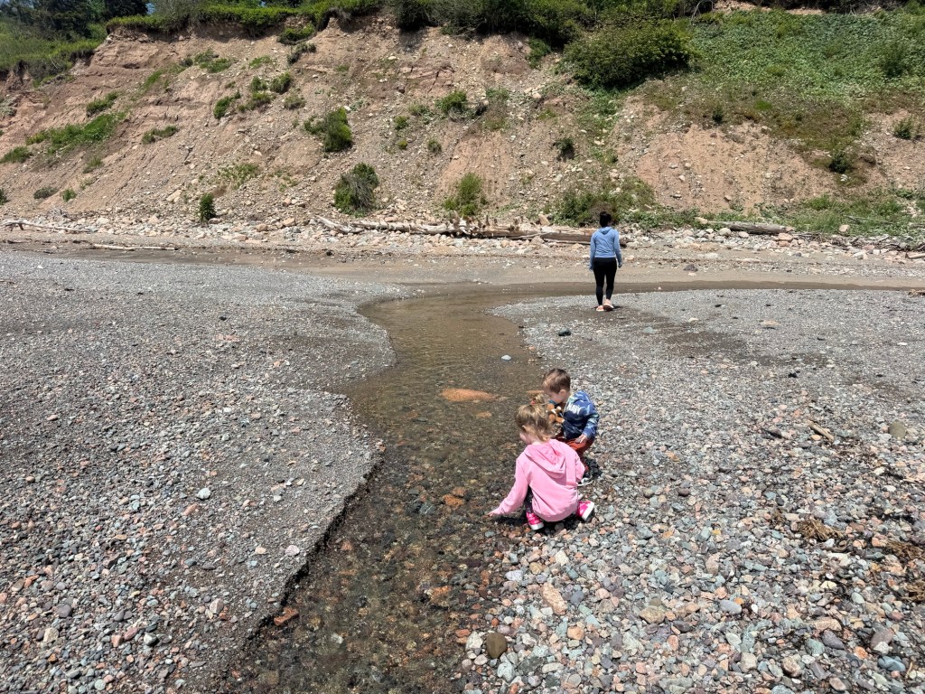 Continuing through the park, the road made its way along the coast, where we unexpectedly had to drive in and out of fog. Luke had to unexpectedly stop for a quick work meeting, so the kids and I all got out to explore Long Beach as the tide was going out. There was the sweetest park employee who showed the kids all the different shells and rocks to look at on the beach. She really made this stop memorable and special. Quinn was so excited to show her all the treasures she found, and Beverly even had a surprise waiting for both kids when they came back. She told us about Fundy Wishing stones which are stones with a white circle on them. You have to make a wish and leave them on the beach for it to come true. Quinn still talks about these stones months later and looks for them everywhere from fields to other beaches.