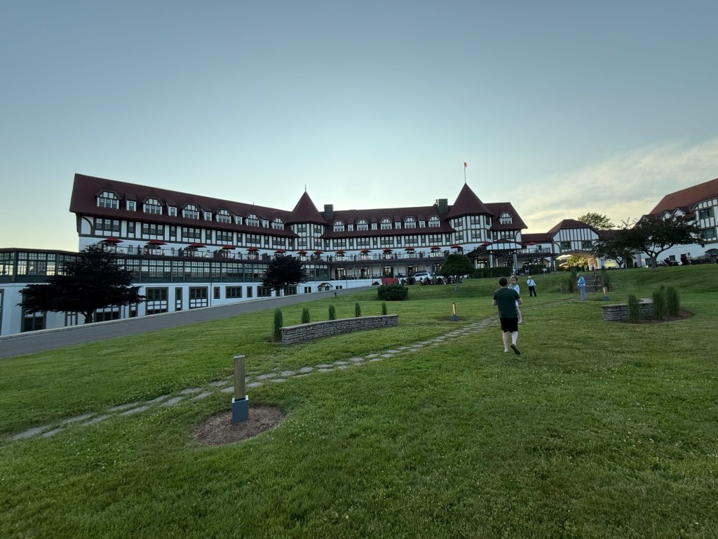 That night we were staying in the Algonquin Resort in St. Andrews. Before we checked into our hotel, we did one of the coolest things. We visited Ministers Island which is just off the shore by St. Andrews. This island is special as it is accessible twice a day at low tide by car. To get there you have to drive across a land bridge that is covered by ocean most of the day. We happened to arrive in St. Andrews just at low tide and were one of the first cars across. The island was owned by a railroad barron who helped build the trans Canada railroad. On Ministers Island he built an innovative farm and a massive summer house. This property has been well maintained, with the barn being a true work of art. It should be no surprise that this was Luke’s favorite part of the trip and as a whole the island, from the barns, house, bathhouse, and landscaping was all amazing to visit. The drive across the land bridge was so cool but a bit harrowing, as Luke got caught in the sand and we had our tires spin.